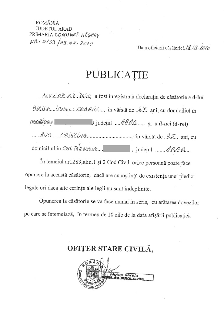 • Publicații casatorie 2020